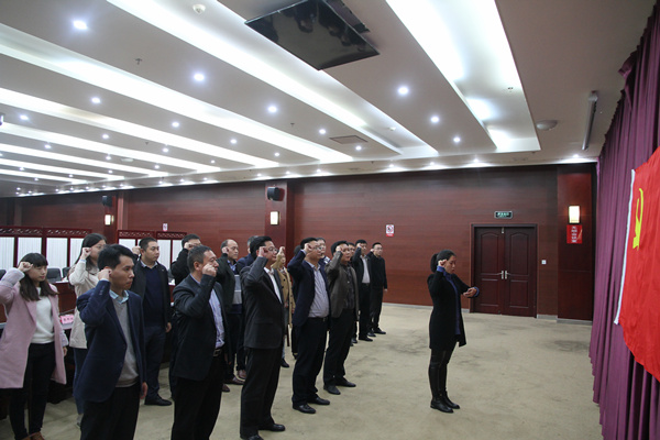最后,蔡邦银与支部党员一起面对党旗,庄严地举起右手重温入党誓词。“我志愿加入中国共产党,拥护党的纲领,遵守党的章程……永不叛党!”党旗鲜红,誓言铿锵。会场里,满怀激情的宣誓声,激荡着共产党人的崇高理想,宣示着朝天区委党员干部不忘初心、牢记使命,以永不懈怠的精神状态和一往无前的奋斗姿态,践行党的十九大精神、争当干事先锋,做出不负时代、不负人民、不负组织的优秀业绩。