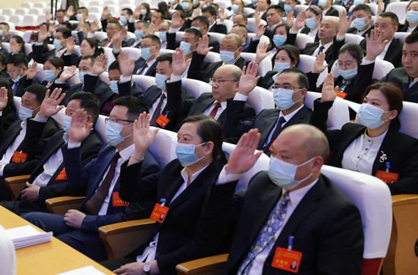 市委常委、区委书记蔡邦银在闭幕会上讲话。他指出,会议期间,各位代表以高度的政治责任感,认真履行职责,依法行使权力,积极建言献策,共商发展大计,审议通过了政府工作报告、“十四五”规划纲要草案和其他各项报告,实现了党的意志与人民意愿的高度统一。这是一次高举旗帜、继往开来、开拓进取的大会,是一次发扬民主、集中智慧、团结务实的大会。