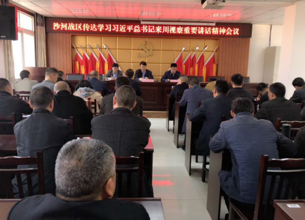 在沙河镇战区,区人大常委会副主任邝庆林带领的宣讲分队结合全镇近期脱贫攻坚、新村建设等工作开展情况,要求各战场指挥长要加强进村宣传,同时督促各帮扶责任开展入户宣讲,进一步做实做细群众工作,确保把习近平来川视察重要讲话精神和对四川人民的关怀传达到广大群众中去,不断增强脱贫动力、凝聚发展合力,切实夯实决战决胜脱贫摘帽基础。
