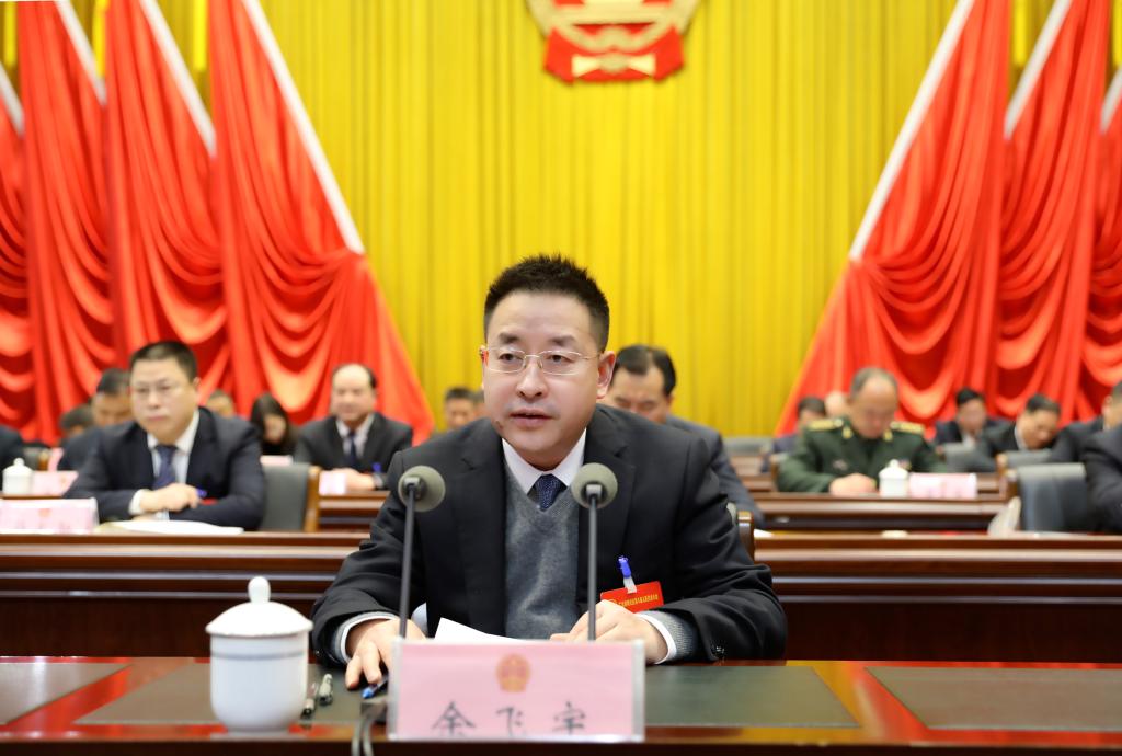 余飞宇在讲话中代表区委,向大会的圆满成功、向新当选的同志表示热烈祝贺。他说,区八届人大三次会议在全体代表和与会同志的共同努力下,圆满完成各项议程。会议期间,各位代表充分发扬民主,认真履职尽责,积极建言献策,共商发展大计,展现了新时代人大代表的新风貌、新担当、新作为。会议审议批准了政府工作报告和其他各项报告,圆满完成了选举任务。这次大会,是一次高举旗帜、民主团结的大会,是一次催人奋进、继往开来的大会,必将激励全区上下以更加坚定的信心、更加饱满的精神、更加顽强的意志,在新时代新征程上,携手续写新的壮丽篇章。