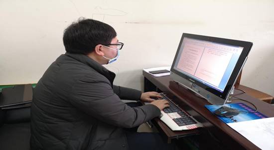 镇人大代表、转北村第一书记胡靖南夜以继日汇总疫情排查情况。