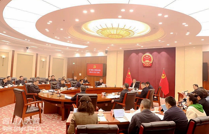 会议传达学习了习近平总书记在中共中央政治局会议上、在中共中央政治局第十一次集体学习时、在天津看望慰问基层干部群众时、在2024年春节团拜会上、在中央全面深化改革委员会第四次会议上的重要讲话精神,以及省级领导干部和市厅级主要负责同志推动高质量发展专题读书班精神,强调要认真学习总书记重要讲话精神,深学细悟总书记关于发展新质生产力推动高质量发展等方面的论述,贯通领会“八个深刻把握”的精髓要义,持续在学懂弄通做实上下功夫,立足四川实际,结合人大职能抓好贯彻落实。要旗帜鲜明坚持党中央集中统一领导这个最高政治原则,不断提升做好新时代人大工作的政治站位和理论水平。要坚持围绕中心服务大局,统筹做好立法、监督、代表等工作,助推经济社会发展各方面重点任务落地落实。要全面加强自身建设,深入贯彻落实习近平总书记关于建设“四个机关”和省委“五个作表率”要求,持续巩固提升自身建设水平。