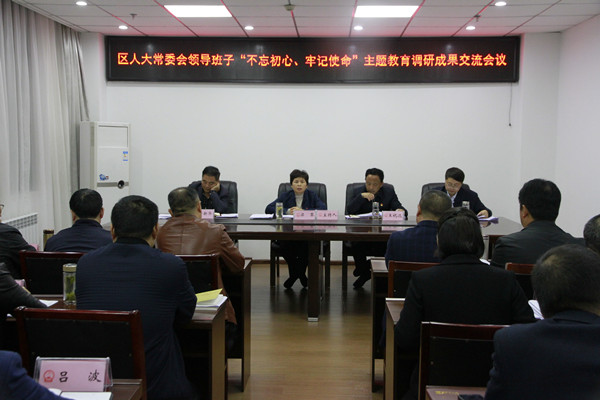 会议听取了区人大常委会领导班子主题教育调研成果交流。会议要求,要坚持把学习贯穿始终,进一步学懂弄通习近平新时代中国特色社会主义思想,注重学习与研讨相结合,运用新思想指导实践、推动工作。要进一步开展好调研,进一步梳理、完善调研成果,不断拓展调研成果在工作运用中的广度和深度,切实把调研成果运用好、作用发挥好。要抓好问题整改,突出问题导向,深入查找、解决热、难问题,坚决做到即知即改、立行立改、全面整改。要把开展好主题教育与抓好人大常委会的监督、代表、自身建设工作以及区委安排的各项工作结合起来,坚持“两手抓、两促进”,确保全年工作任务顺利完成。要抓好宣传工作,增强做好新闻宣传工作的主动性和自觉性,善于挖掘和总结提炼好经验、好做法,加大新闻宣传和信息报送力度,不断提升人大宣传工作影响力。