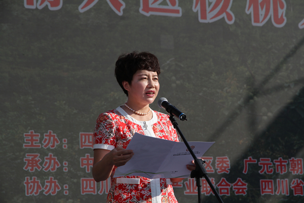 受市委王菲书记、市政府邹自景市长委托,蔡邦银代表中共广元市委、市人民政府,也代表中共广元市朝天区委、区人民政府向莅临朝天的各位领导、各位嘉宾表示热烈的欢迎。他在致辞中介绍了广元和朝天经济社会及核桃产业发展情况。他说,近年来,市委市政府发挥资源优势,念好“山”字经,核桃产业全面发展壮大。2017年全市核桃种植面积近200万亩,位居全省第二位,产量达到16.9万吨,位居全省第一位,产值达55亿元,主产区人均核桃收入突破5000元。作为广元核桃产业发展的主阵地,核桃一直是朝天的一张靓丽名片,朝天区充分发挥资源优势和区位优势,加快追赶跨越发展步伐,先后获得了全国生态文明先进县区、国家科技进步县区、四川省县域经济发展先进县区、四川省“三农”工作先进县区等多项重要荣誉。朝天始终坚持把核桃产业作为农业的首位产业、名片产业和支柱产业,致力于做大产业规模、提高产品品质、做优产业品牌、健全产业体系、推动融合发展,走出了一条特色产业助力脱贫攻坚和乡村振兴的发展之路。2017年,朝天核桃产量达4.3万吨,连续9年位列四川省县区第一,产值达22亿元,农民人均核桃收入达6000元以上,核桃产业真正成为了支撑朝天脱贫奔康的富民产业。