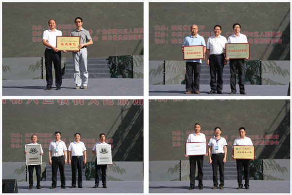 开幕式上,举行了“全国最美森林小镇100例”“四川省第二批森林小镇”“国家AAA级旅游景区”“2018四川十大旅游工艺品”“四川省生态旅游示范区”“全国经济林产业区域特色品牌建设试点单位”授牌仪式。