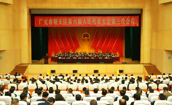 3月5日上午,朝天区影剧院气氛热烈而庄重。熠熠生辉的国徽悬挂在主席台帷幕中央,在灯光的辉映下格外醒目;整个会场洋溢着团结奋进、求真务实的浓厚氛围。广元市朝天区第六届人民代表大会第三次会议在这里隆重开幕。